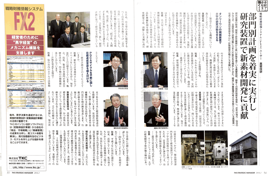 「戦略経営者」2016年2月号に関連企業の真壁技研が掲載されました