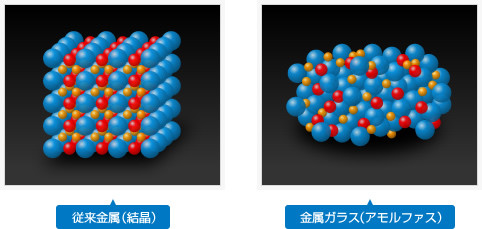 金属ガラスは、結晶構造を持たないガラス状のアモルファス金属材料で、高機能、高精度、省エネ加工が可能と、21世紀の中核を担う究極の金属として期待されています。